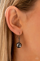 A dramatic assortment of oversized gunmetal beads, textured gunmetal rings, and faceted metallic blue gems delicately glides along an invisible wire below the collar, resulting in a stellar sparkle. Features an adjustable clasp closure.