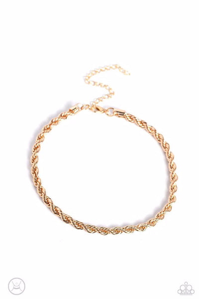 An ornate, thick, gold rope chain links around the neck, resulting in an edgy minimalist statement. Features an adjustable clasp closure.