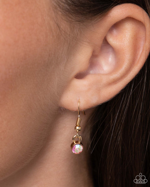Three mismatched gold chains interlock and cascade around the neckline in endless layers. A light peach and light peach iridescent-infused gold butterfly flutters at the bottom of the display for a whimsical finish. Features an adjustable clasp closure. Due to its prismatic palette, color may vary.